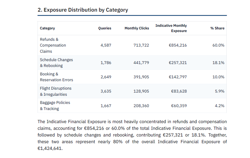 “Refund & compensation queries alone represented €854k in monthly support cost exposure.”