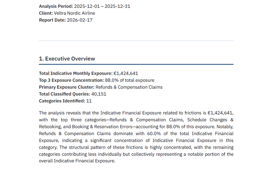 The resulting report identifies structural concentration patterns and ranks friction domains by indicative financial impact.